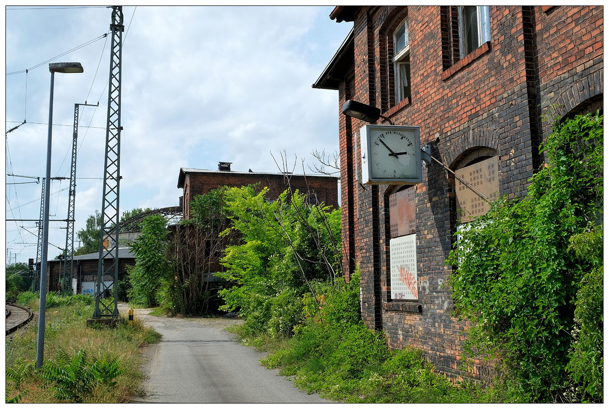 des ehemaligen Bahnbetriebswerkes vorbei.