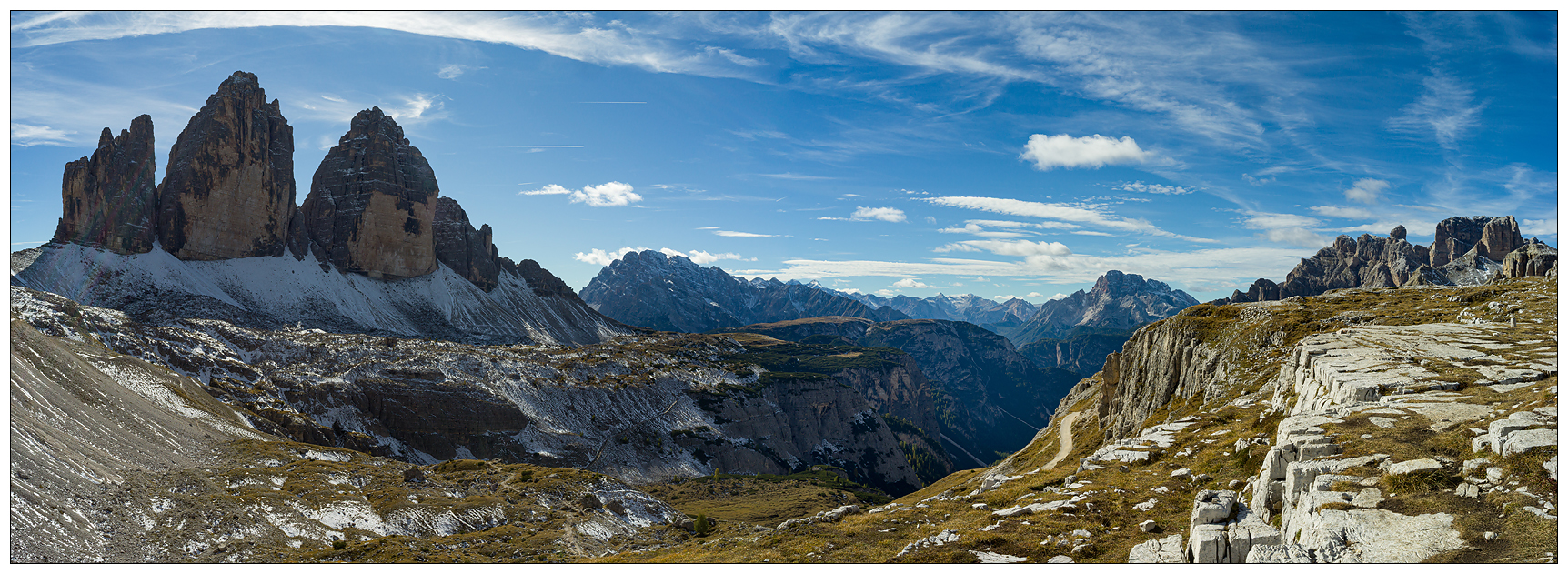 Die Drei Zinnen mit Blick ins Höhlensteintal